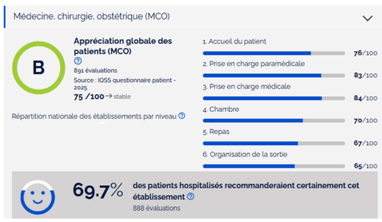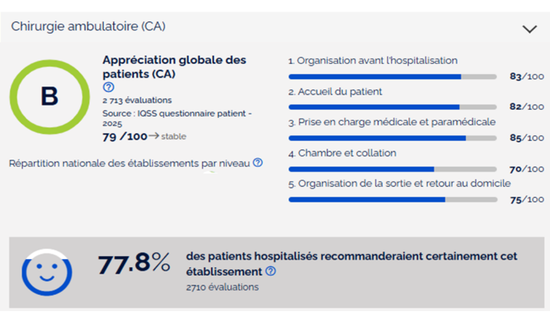 - Le niveau de qualité de l’établissement de santé est évalué par la sécurité de ses pratiques professionnelles, sa capacité à être à la pointe du progrès, des technologies, et de la science médicale.